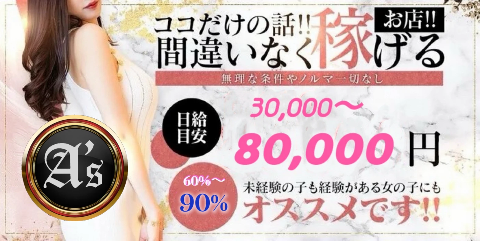 どなたも一律60%スタート◉90分12,600円〜最大15,120円+特別指名料◉120分14,400円〜17,280円+特別指名料エリア最高バック率❣️頑張れば頑張るほど毎月お給料に反映されます^ ^これとは別に⭐︎美容代の支給⭐︎入店祝金の支給などなど特典しかありません♡
